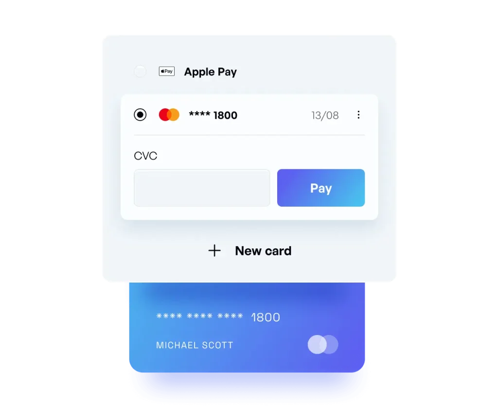 VISA/Mastercard/Maestro bank cards, SEPA, Apple Pay, Google Pay, etc.